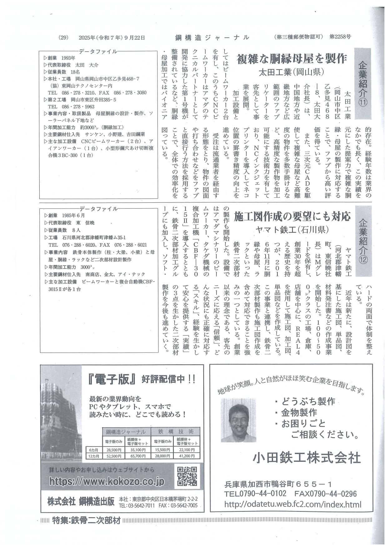 鋼構造ジャ-ナル 第2258号に紹介されました。